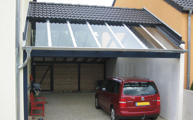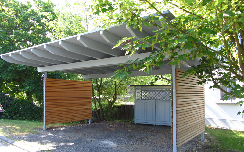Carports die sich gut einfügen. Die Wandelemente bestehen z.B. aus Lärche-Rhombusleisten. Räume und Schutz aus Holz sind leicht gedacht und leicht gemacht.