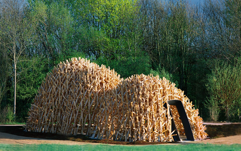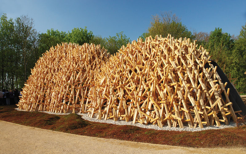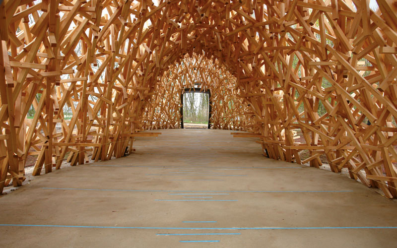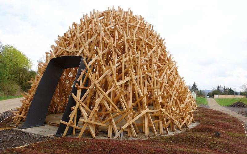 Der Bau ist eine Experimentalkonstruktion aus Holz: Titel „Bionik – Lernen von der Natur“