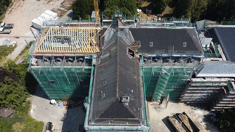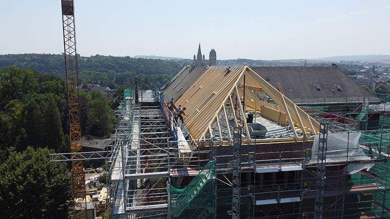 Kloster Marienborn in der Domstadt Limburg: das imposante historische Gebäude wird umgebaut. Es werden umfangreiche Holzbauarbeiten ausgeführt. Unsere Zimmerleute stellen ihre Erfahrung und ihr handwerkliches Geschick unter Beweis.
