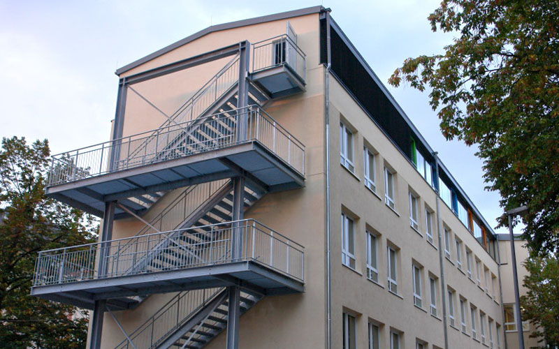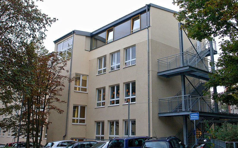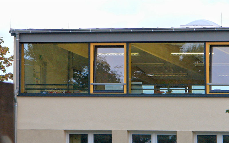 Diese Schule in Wiesbaden wurde während der 6-wöchigen Sommerferien aufgestockt, so dass am ersten Schultag das Lernen in neugestalteten Klassenzimmern weiter gehen konnte. Hier war die Planung/Koordination und Termineinhaltung die größte Herausforderung, die nur der Holzbau so leisten kann.