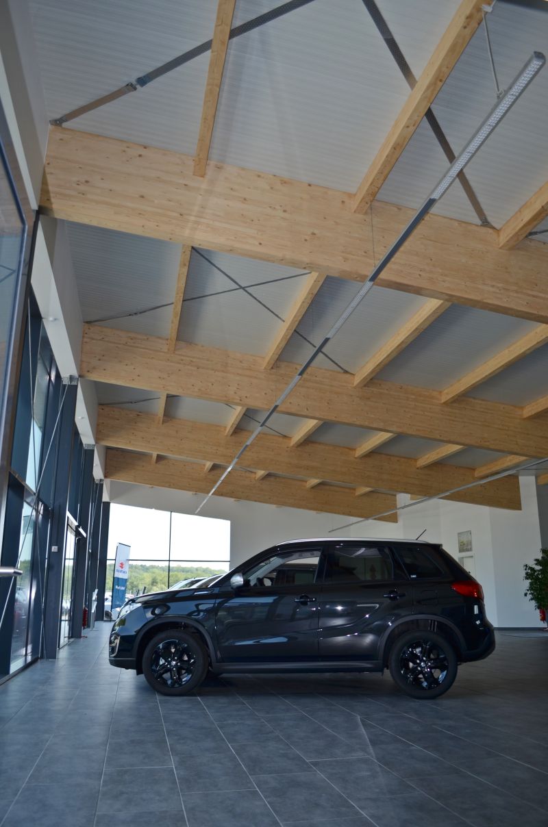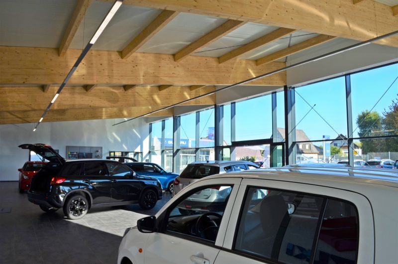 Holz trifft Auto. Ein Autohaus hat den Mut, eine Verkaufshalle in Holzbauweise zu errichten. Kunden und Mitarbeitern gefällt’s.