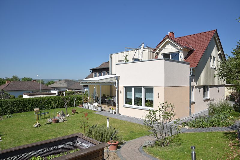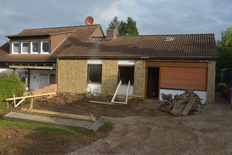 Ein Einetagenhaus wurde komplet saniert, um eine Etage aufgestockt, angebaut, energetisch saniert und die Wohnfläche mehr als verdoppelt. Aus einem einfachen Häuschen wurde ein grosses erneuertes Wohnhaus mit attraktiven Wohnräumen innen und aussen.